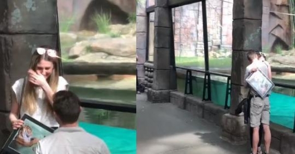沒想到國外竟有人把求婚地點設置在動物園裡!