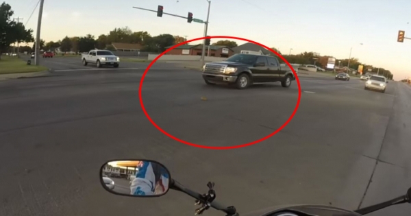 影片一開始,重機女騎士正在大馬路停紅燈,沒想到一台紅色的車開過去後,地上多出了一個不明物體,仔細一看才發現竟然是一隻小貓咪,讓她當場嚇壞了!因為真的超危險!