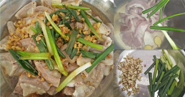 鍋裡下花生油,放入沙薑小火慢慢爆香,加入生抽,蠔油,適量的鹽,加入一湯勺高湯,煮滾放入蔥段。
