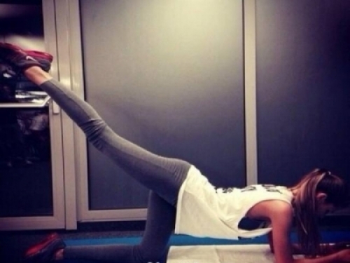 首先先利用雙臂作為地面支撐點,然後慢慢用右腿抬起在上方的右處弓腿,接著向後踢腿為一個動作,來回做30個為一組就行了,這個動作主要是鍛煉大腿的內側和後側,用這種提拉的方式減掉多余的肥肉和脂肪,達到腿部緊致彈性的效果。