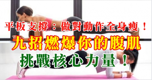 下面小編就為你整理 9 種不同的平板支撐變化訓練動作,一定會燃爆你的腹肌,練完就會熱得發燙,趕快來挑戰一下自己的核心力量吧!