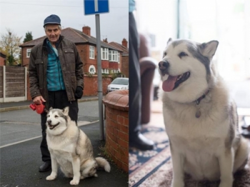 84歲老人Francis Thorley養了一隻叫Mishka的阿拉斯加雪橇犬