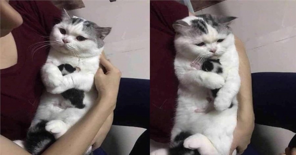 出生沒幾天的小奶貓就要被賣掉,貓媽媽緊緊做出拒絕動作,讓主人感到慚愧