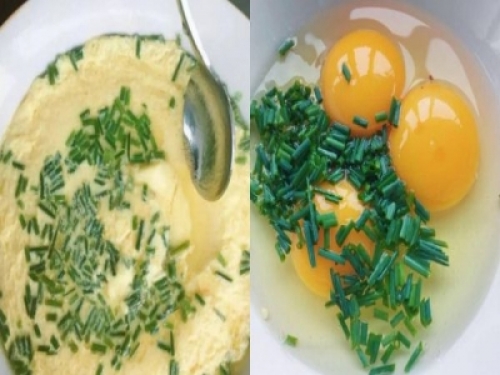 將土雞蛋加入細小的香蔥,一定要香蔥才很好吃哦