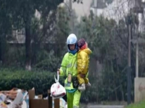 ▲來自雲南昭通的李幫勇,抱著不到三歲的女兒送外賣。