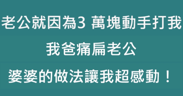 哈摟哈摟親愛的大家~~我是有錢人這麼想小編Pineapple!今天要來說說關「老公就因為3萬塊動手打我,我爸痛扁老公,婆婆的做法讓我感動到不行!」的事件!讓我們一起來看看吧!