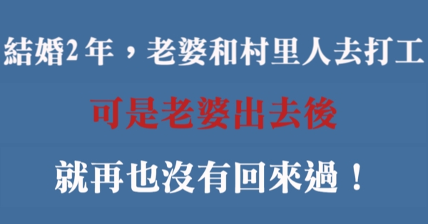 結婚2年,老婆和村里人出去打工,可是老婆出去後就再也沒回來過!
