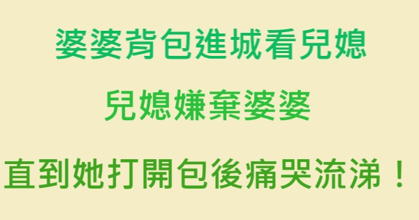 婆婆背包進城看兒媳,兒媳嫌棄婆婆,直到兒媳打開包後淚流滿面!