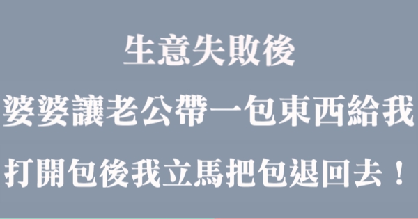 生意失敗後,婆婆讓老公帶一包東西給我,打開後我立刻把包退回去!