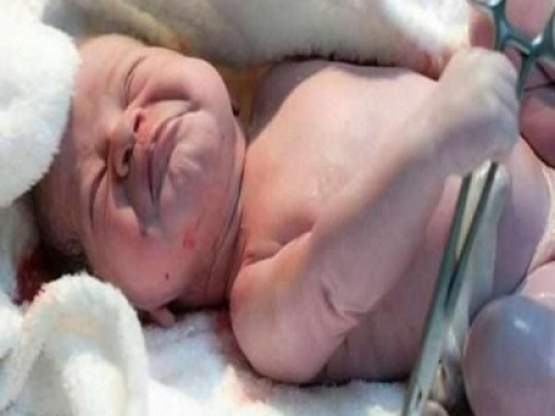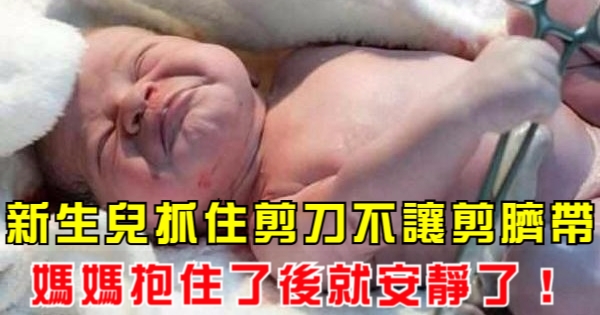 新生兒抓住剪刀不讓剪臍帶,媽媽抱住了後就安靜了!!!