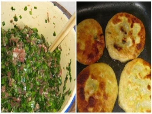用料韭菜500g,麵粉500g,食鹽適量,雞精適量,調和油適量。