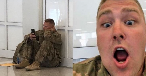 美國大兵坐機場角落「堅持不登機」,看著手機「頻頻掉淚」,沒想到之後「原因」後讓所有旅客都哭了!