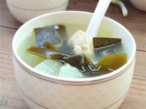 功效:冬瓜海帶湯,集減肥瘦身雙重功效於一身。海帶能增鈣降鈉,利於膽固醇的排泄,而冬瓜能清熱解暑,兩者搭配在一起做成很清淡的冬瓜海帶湯,不但營養,而且解暑。