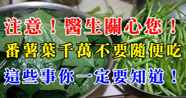 注意!醫生關心您!番薯葉千萬不要隨便吃,這些事你一定要知道!