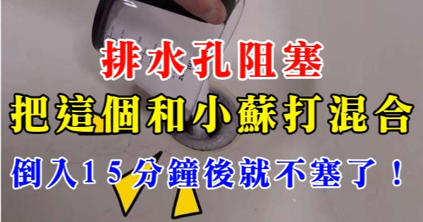 排水孔阻塞,把這個和小蘇打混合,倒入15分鐘後就不塞了!