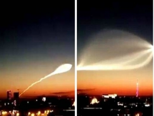 在俄羅斯的下諾夫哥羅德地區(Nizhny Novgorod),於六月十七號的晚上,突然間出現一個無比刺眼的巨大白色光芒,先是呈現魟魚的模樣,後來又逐漸擴散!天空上的這般景色驚動了無數人,而路過拍下這奇特情景的女子更說:「它看起來不像是之前我所見過的任何物體,這到底是什麼鬼東西?」