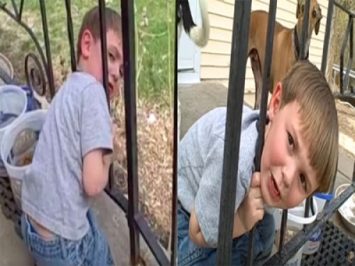 小孩對這個世界充滿好奇心,總是喜歡嘗試看看自己沒做過的,所以很容易發生危險或是意外,像是這個調皮的小男童,居然把頭伸到欄杆外,一時拔不回來,只能呼叫爸媽來求救。