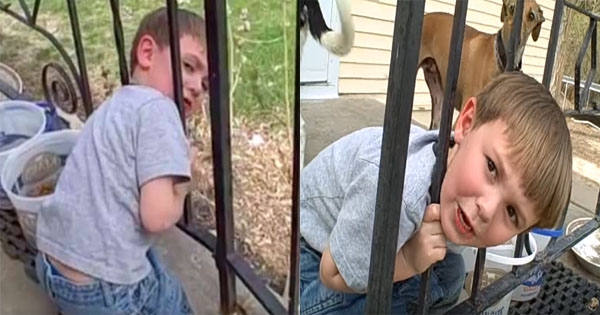 男童貪玩被困在欄杆中出不來,爸媽在一旁冷靜想辦法!沒想到下一秒男童居然這樣做,讓所有人看傻眼!