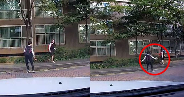 南韓學生放學超級HIGH,以為沒有人直接「人行道」上尬舞!卻不料全程被行車紀錄器錄下!只不過這舞步實在太厲害了!