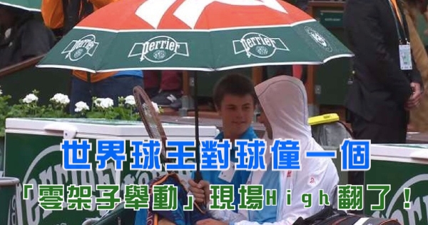 網球比賽下雨突中斷!世界球王對球僮一個「零架子舉動」現場High翻了!