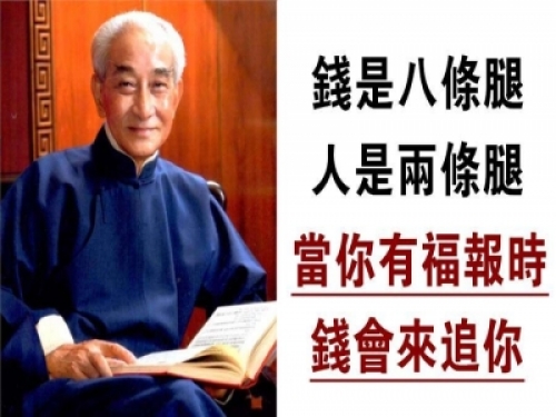 人要追錢,很困難。當你有福報時,錢來追你,這才是正常的。