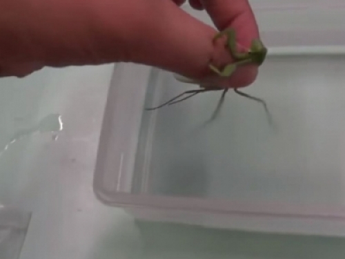 感覺寄生蟲就這樣一直冒出來,沒有要停下來的感覺!真的想不到在這隻小小的螳螂裡面竟然會有那麼大隻的寄生蟲!!
