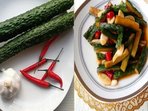 黃瓜2根、大蒜1頭、小米辣5個、鹽適量、海鮮醬油5湯匙、白糖1/2湯匙