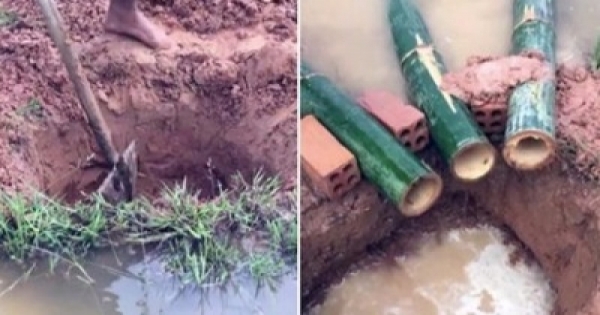 首先,他在池塘邊挖了一個洞,並打算將它打造成「陷阱」。