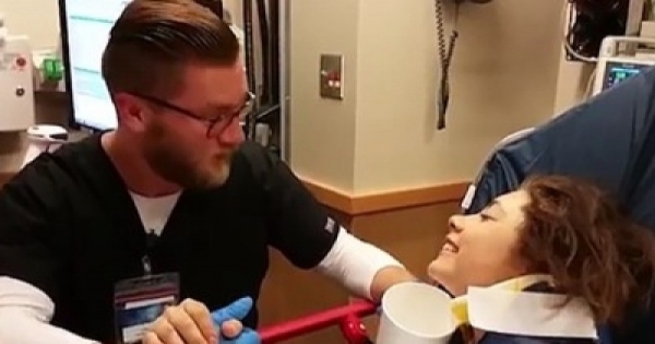 當時女孩因為手骨折的關係,必須要前往醫院進行手術,但這項手術需要接受麻醉,然而她在手術完醒來以後,不知道是不是因為麻醉還沒退的關係,居然開始胡言亂語啦...甚至對一旁的男護士盧克 (Luke)做出超級誇張的舉動XD。