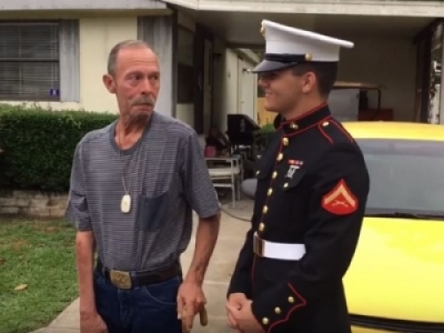 看到孫子完成小時候的夢想,爺爺心理面一定很高興!而且看到自己的孫子也跟自己一樣是名優秀的海軍陸戰隊,心理一定很激動也很乾動!