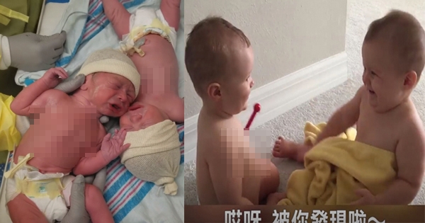 影片中,只看見剛出生兄弟倆,軟綿綿地躺在床上,原本都很乖,沒想到護理師想要抱走其中一個的時候,驚人的雙胞胎感應出現啦!