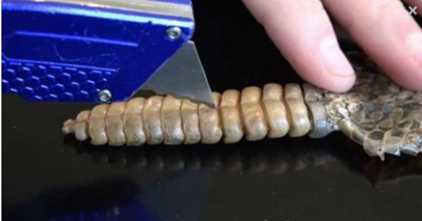 這位網友好奇響尾蛇發出的「嘎嘎聲」從何而來,所以買了標本切開,原來是這樣的構造!