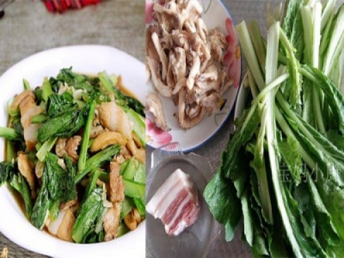 2 小白菜切段;五花肉切片;大蒜拍扁切末