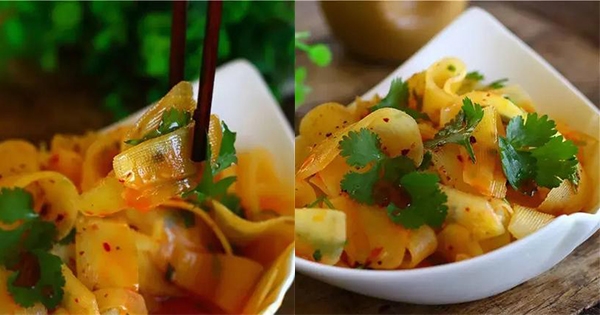 這道拌菜雖然用的是很薄片的馬鈴薯,但是安心啦,這道菜不需要刀工,用刮馬鈴薯的刮刀把馬鈴薯刮成薄片就搞定了。也不需要炒,刮好的馬鈴薯片用滾水炒熟即可,喜歡吃脆點的少焯會兒,喜歡吃麵的的就多焯會,調味料方面無外乎家常備的油鹽醬醋這些,可以說是一道非常方便做的涼拌菜了。