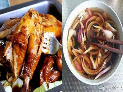 3.生抽老抽比例1:3兌成混合料,為了讓雞色澤好,所有不能弄錯哦