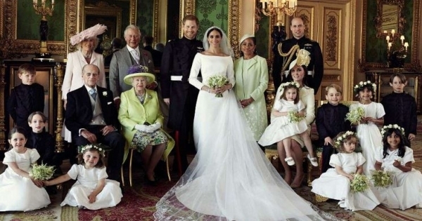 據《每日郵報》報導,這些照片是在婚禮當天下午,哈利王子及梅根王妃按照傳統結束馬車遊行後,九直接在溫莎堡拍攝全家福。