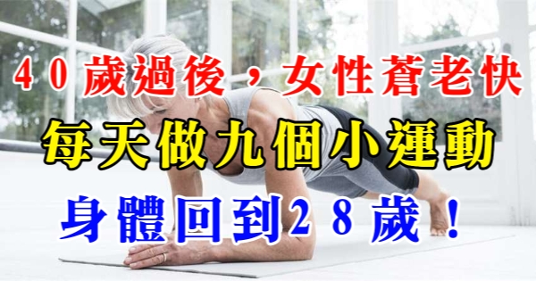 大家好,我是健康一點靈小編CA!今天要來說說關於「40歲過後,女性蒼老快,每天做九個小運動,身體回到28歲!」的事!不知道大家對於這個有多了解呢?一起來看看吧!