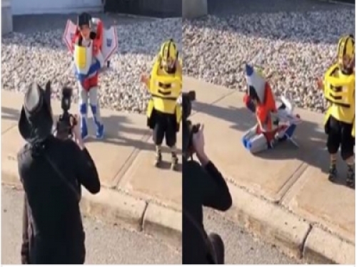這3個小男孩帥氣勁裝!俐落跪下居然一秒變身變形金剛,讓網友歡呼:太帥了!