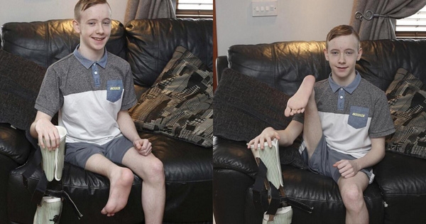 根據媒體報導,英國這位15歲少年特里斯廷在幾年前因為右腿癌症病變,為了活命只能進行截肢手術,但為了能夠讓少年繼續進行他最愛的足球運動,醫生竟然把他的右腳倒著裝!