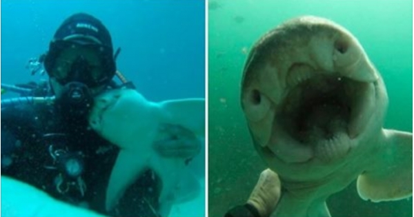 7年前,澳洲有一位27歲的資深潛水員瑞克(Rick Anderson)於一次潛水時,結識了一隻澳大利亞虎鯊寶寶,當時的牠身長只有15公分,看上去就像玩偶一樣!