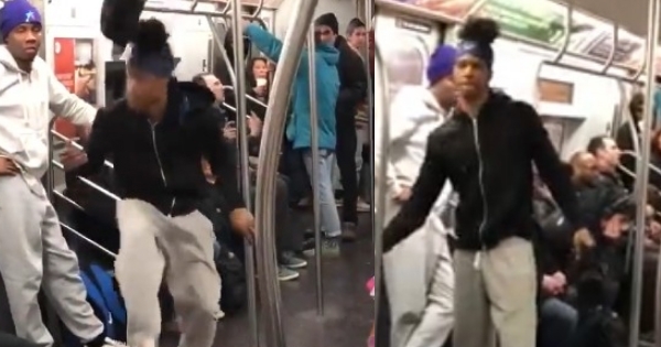 所謂高手在民間,有很多有才華的人都不吝嗇自己的才華,而且常常會進行很多快閃活動!這兩名男子看好時機之後,就開始在地鐵裡面大跳一番啦!