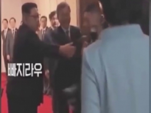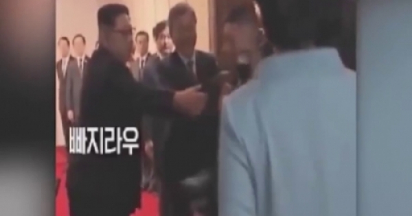 影片內容是我們金正恩跟文在寅原本在宴會廳裡面等待夫人們的到來,結果這時一名北韓的攝影師因為想要拍攝李雪主走紅毯的站面照,沒有發現到自己擋住了第一夫人的去路!
