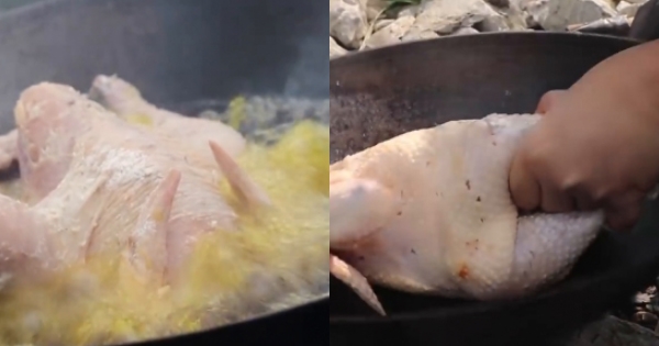 「恩,這雞看起來不錯。」他細心地撒上花椒、胡椒等各種調味料幫牠按摩...