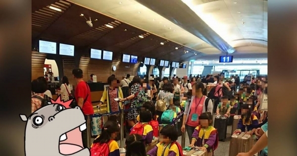 有網友在爆廢公社PO文表示,在桃園機場目擊到一堆幼稚園小朋友跟著老師一起整團出國,而且還沒有家長陪伴,還每個小朋友都拿著超大行李箱!