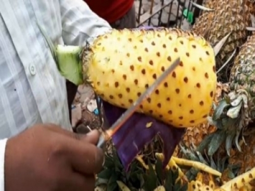 在國外其實很盛行吃「鳳梨」這件事,尤其是在東南亞國家,有些人直接一整顆鳳梨來賣,而且造型跟花招讓人眼花撩亂。今天要來介紹有位印度的小販,他殺鳳梨已經到了神的境界!