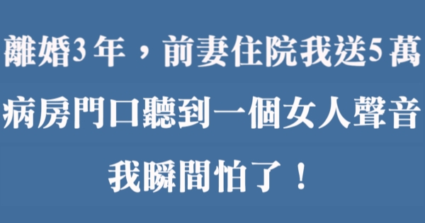 離婚3年,前妻住院我送5萬,病房門口聽到一個女人聲音,我瞬間怕了!