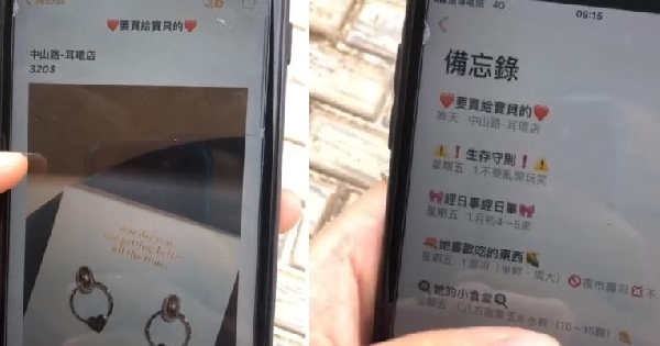 原PO不敢相信的點開文章細看,只見男友拍下了一對可愛的耳環,並詳細的寫著「中山路、耳環店」,看來應該是想等有時間的時候再去買來送給自己,讓她感動的直呼「這種男人哪裡找!」