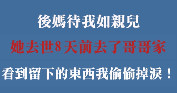 哈摟哈摟親愛的大家~~我是有錢人這麼想小編Pineapple!今天要來說說關「後媽待我如親兒,她去世8天前去了哥哥家,看到留下的東西我偷偷掉淚!」的事件!讓我們一起來看看吧!