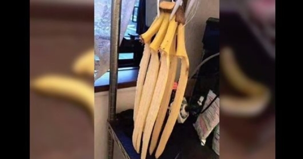 結果隔天一看卻驚見「香蕉自盡」的場景,