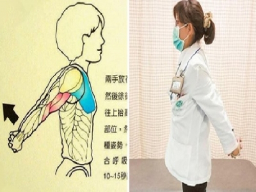 兩手放在背後互抓然後徐徐的將手臂往上